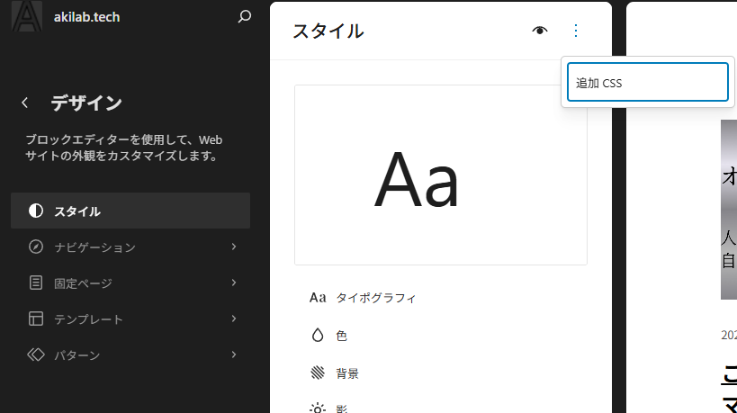 そういう時に使えるのが、追加CSSやfunctions.phpです。