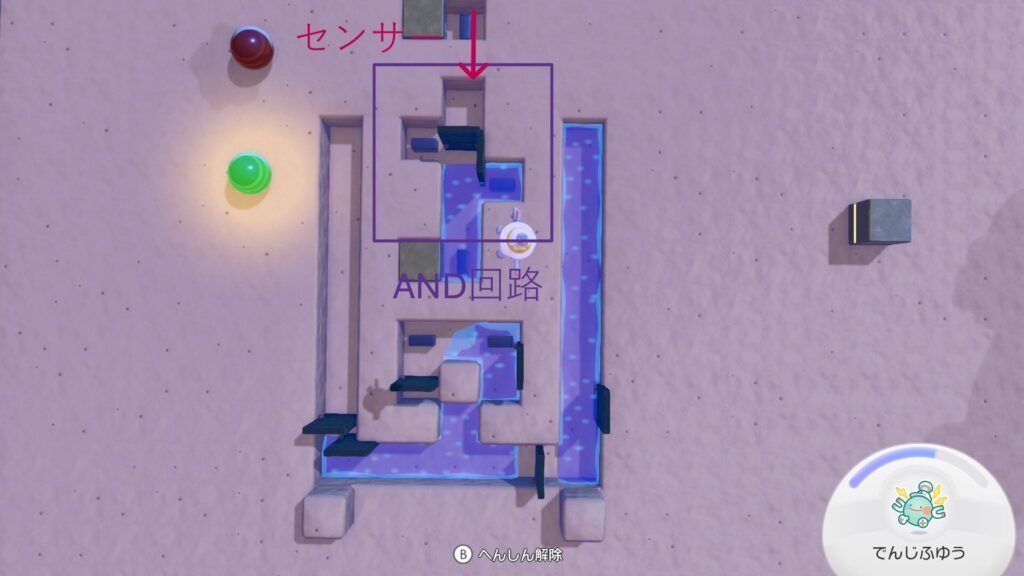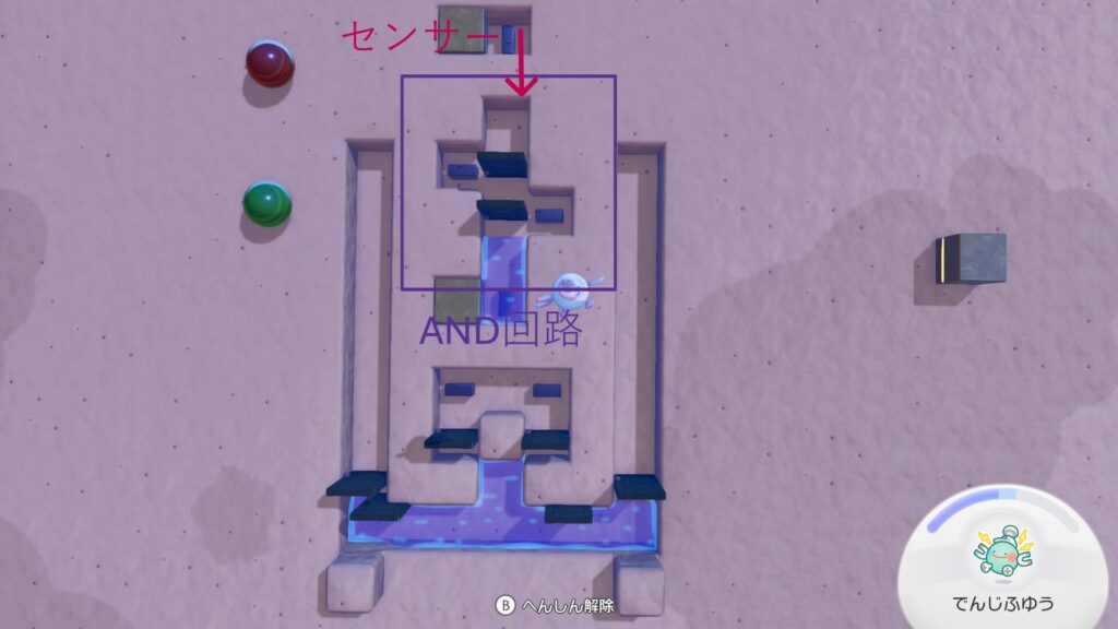 ぽこあポケモンでは、水や扉、センサーなどを組み合わせることで、