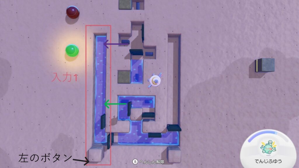入力1のボタンを押すと、入力1の通路に水が流れ、