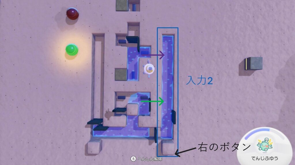 入力2のボタンを押すと、入力2の通路に水が流れます。